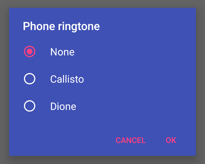 确认 dialogs 需要用户在提交之前明确的确认他们选择的选项。例如,用户可以试听多个铃声,但是只有点击 “确定” 才是最终选择。