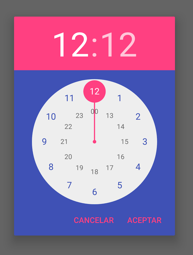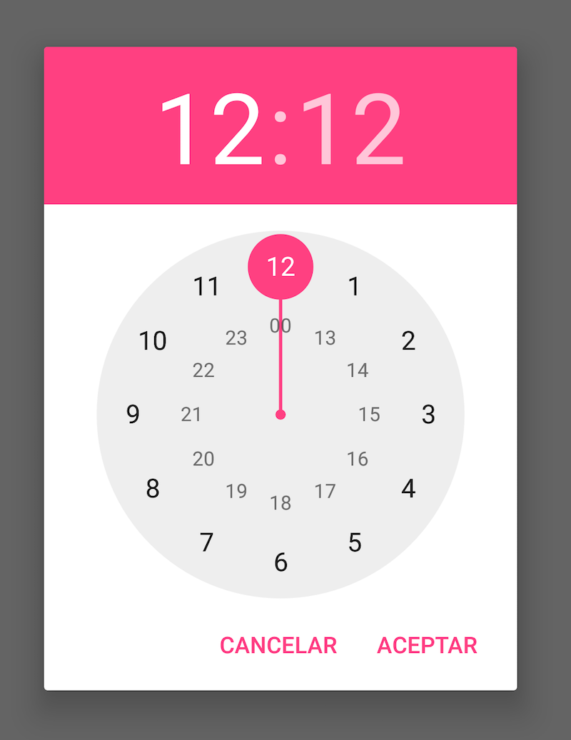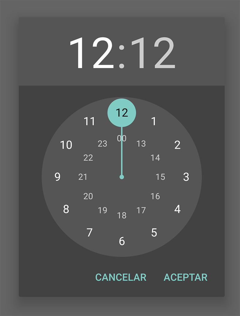 一个时间选择器根据用户的首选时间设置(即12小时或24小时格式)进行调整。 对话框选择器用于在移动设备上选择一次(小时:分钟)。